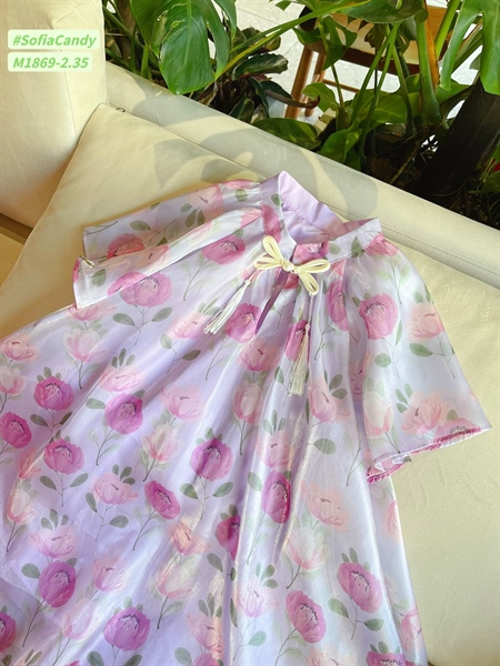 P419 Đầm tơ hoa tím BG