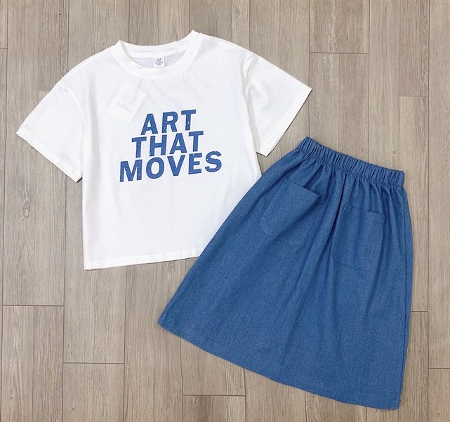 P449 Set áo chân váy màu denim